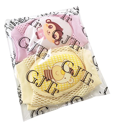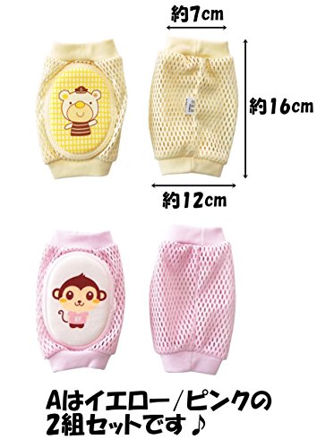 GJTr ベビー キッズ 用 ひざあて フリーサイズ クッション 入り サポーター 2組 セット A ピンク イエロー
