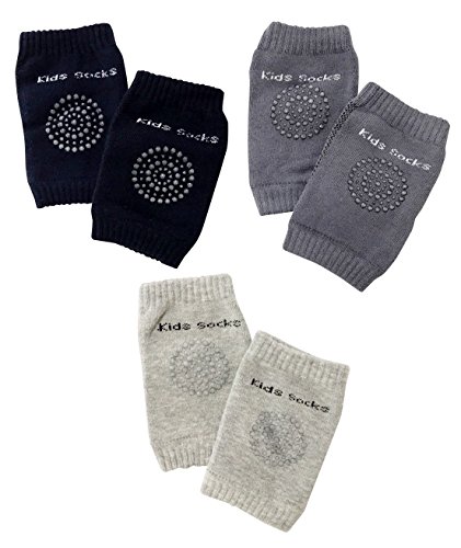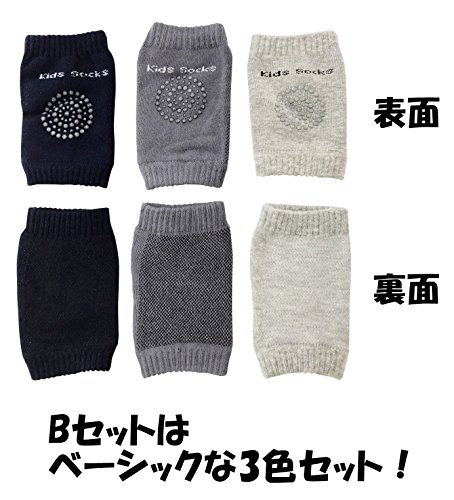 GJTr ベビー キッズ 用 ひざあて フリーサイズ サポーター 3組 セット ネイビー チャコール グレー B