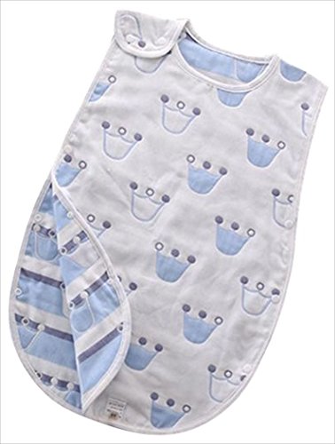 GJTr 6重 ガーゼ スリーパー ベビー パジャマ ベスト オーガニック コットン 綿 クラウン ブルー