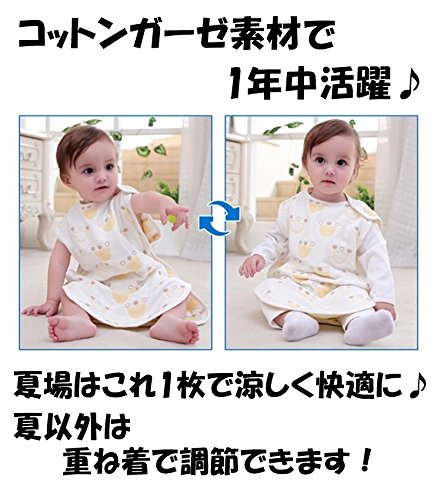 - 冬は布団から出た赤ちゃんの肩やお腹を冷えから守ってくれ、夏はエアコンで冷えたお部屋でもお使いいただけます。このスリーパーベストを1枚着せてお布団や毛布で調整してあげることで、赤ちゃんはより快適に過ごせますよ!