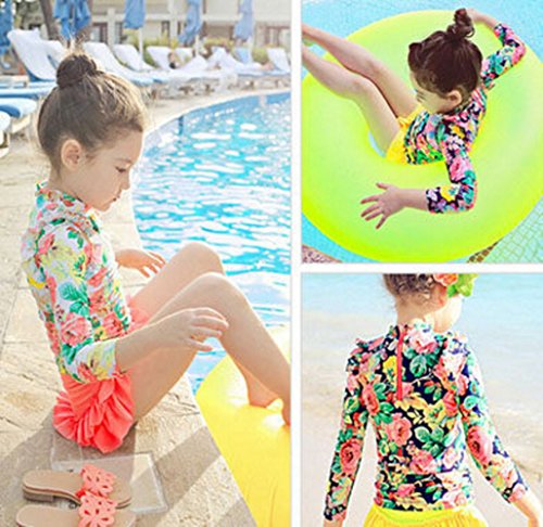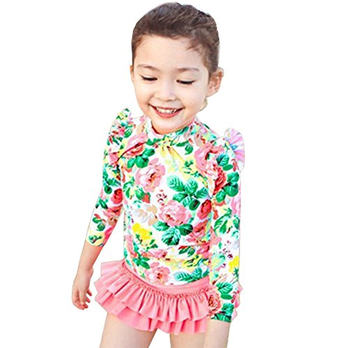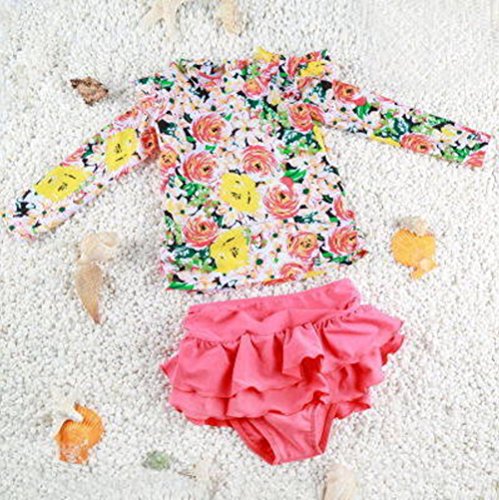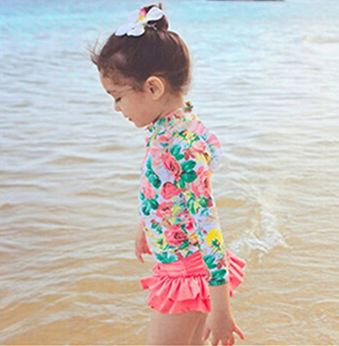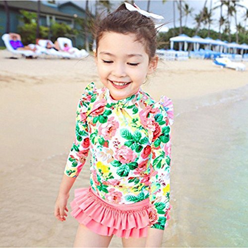 GJ ガールズ 水着 子供 女の子 セパレート花柄水着 3点セット海水浴 スイミング ベビー フリル 帽子付き (L, ピンク)