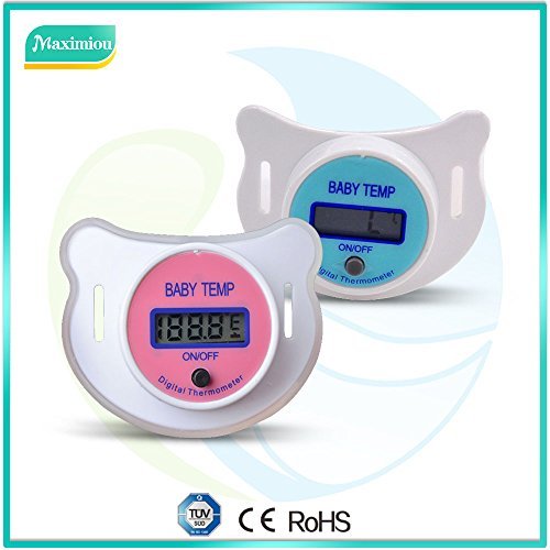 Perfect and practical to measure the temperature of a baby with a comfortable soft nipple. No need to prod and poke in ears, under arms and under tongue; just pop the pacifier/soother/dummy in the mouth;It even has a audible Fever alarm beeper feature to wake you. It takes a reading every 3 minutes.;It has an Accuracy of +/-0.1?C (+/-0.2?F) and a display range is between 32.0?C~42.0?C;Orthodontic shape to not impede in growing teeth and made of a soft silicone material to be comfortable on the gums. Comes with a cap to keep it hygienic when it's outside the mouth.;Powered by: 1 X LR/SR-41 1.5V Cell Button battery (INCLUDED) - NOTE THIS IS THE PINK PACIFIER