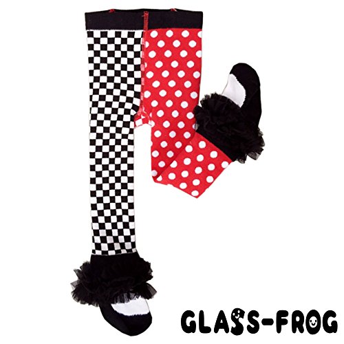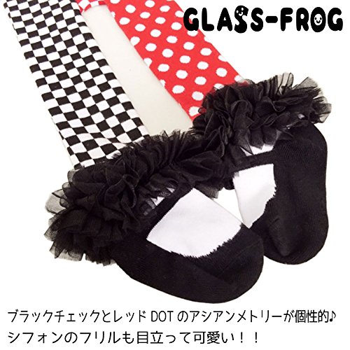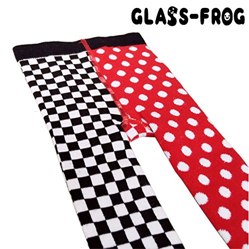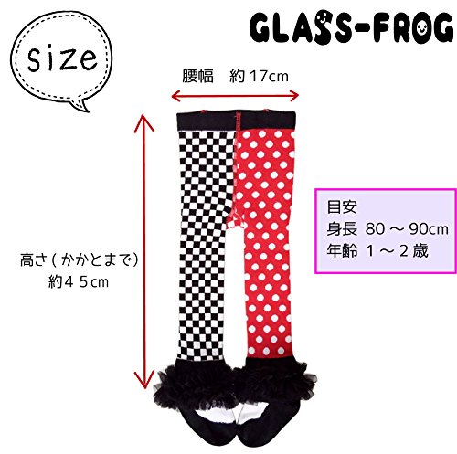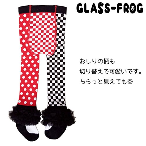 【GLASS FROG】ベビー キッズ アシンメトリー可愛いタイツ ブロックチェック×水玉 80-90cm 1-2歳