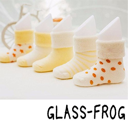 【GLASS FROG】ベビーソックス 新生児 キッズソックス 折り返し ふわふわ 5足セット(イエロー,8-10cm)