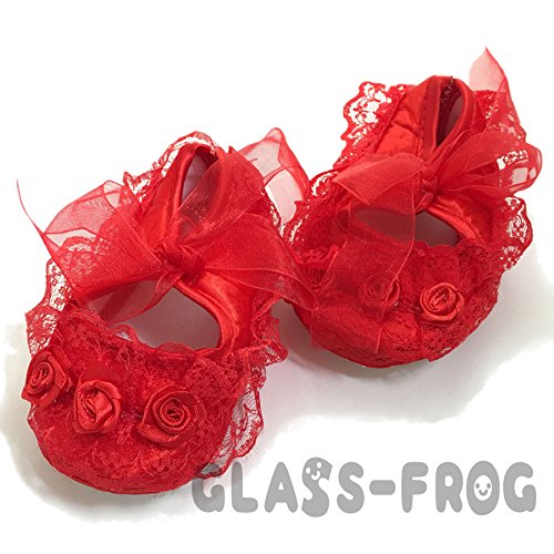 【GLASS FROG】ベビールームシューズ ベビーソックス 新生児 赤ちゃん レース 花柄 可愛い ちっちゃい レッド