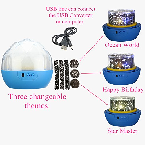 プロジェクターランプ、Glime夜間ライトロマンチックスターライト、3プロジェクト映画Changeable : Stars / Ocean /誕生日、3明るさ調光機能付き、USBバッテリーforキッズ赤ちゃん寝室ベッドランプクリスマスギフト GLIMEMannysen1367