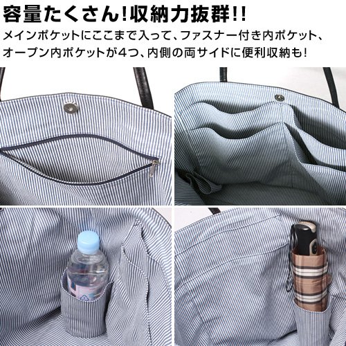 文字通りデカトートバッグなのですが、マグネット式の留め具がついてるので、開きっぱなしにはなりません。