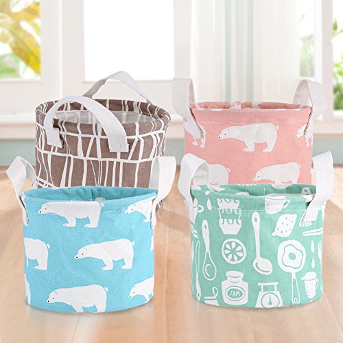 gloglowキュートなプリントコットンリネンデスクトップSundriesストレージボックスオーガナイザーラウンドバスケットハンドル付き GLOGLOWtrb3mvdq69-02