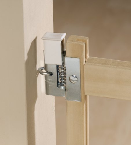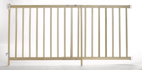 Made in the USA. JPMA Certified. Top and Bottom of Stairs rated. The wood slats and frame are made of sturdy American Hardwood. Mounts easily to opening using simple hand tools. It features our Soft Touch latch for easy securing and a quick release mechanism for easy removal. Ideal for taller children and larger pets. Recommended for use in openings of 41.3" to 68.5" so it is perfect for open floor plan homes. 32" (H).