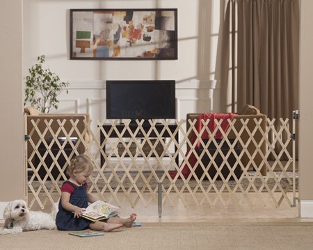 Made in the USA. JPMA certified and recommended by many major kennel clubs. It is a certified "Top of Stairs Rated Expansion gate that easily latches and unlatches with one hand. The exclusive design prevents pinch points and securely attaches to the wall with simple hand tools. Designed for babies, small children from 6 to 24 months and also is ideal for pets. Fits openings from 32" to 84", collapses to the industry's smallest profile (21.5") and swings out of the way when not in use.