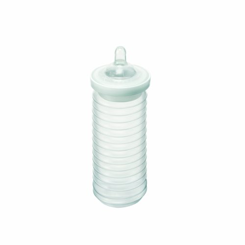 携帯にすぐれた『使い捨て・ほ乳ビン』がスイスより届きました。 ヨーグルトでも入っていそうなパッケージは、完全密閉されているから、清潔でママも赤ちゃんも安心!容量250mlのボトル部分はジャバラ式にたたまれて 収容されているからとってもコンパクト!バッグの中に何個かしのばせて、お出かけにもOKなポータブルサイズです。洗浄不要で、取り出しそのままお使いいただけるから、外出先や旅行先はもちろん、長時間にわたる乗り物での移動など、ほ乳ビンが消毒でき ない環境で授乳が必要な際にとても便利です。ビスフェノールAを含まず、ご出産当日から安心してお使いいただけます。
