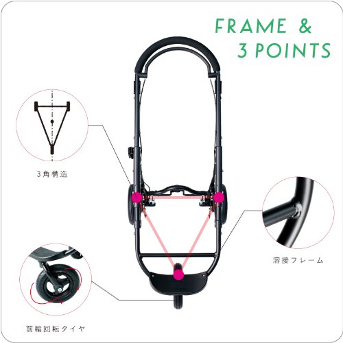 走行性を重視した、3角構造の耐久性に優れたフレームを開発しました。3輪スタイルは前輪が1輪のため、進みたい方向に前方を向けるだけのハンドリングで方向転換が可能です。ハンドルを片手で握った状態であっても方向転換がラクに行えます。また、溶接により剛性を上げたフレームで、きしむことのない快適な走りを実現します。