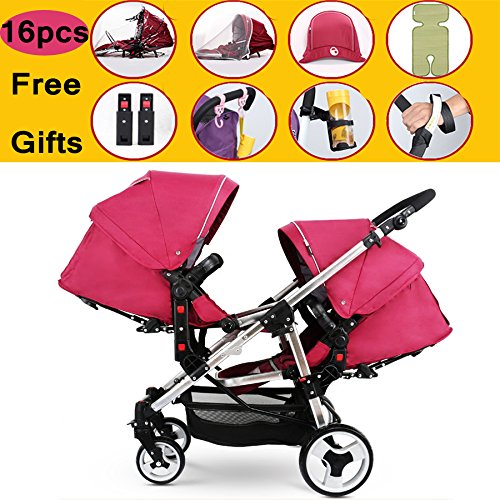 - 16pcs Free Gifts: rain cover*2, mosquito net*2, foot muff *2, summer mat*2, Accessories*2, Hook *2, cup holder*1, wrist strap*1