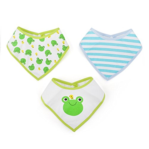 GOGO Baby Bandana Drool Bibs With Snaps, 3-Pack Double Layer Waterproof Bibs-Frog