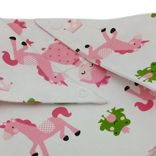 GOGO reversible baby bib makes feeding time fun and easy. Made from soft and comfortable fabric, it is very kind to your baby's skin. Sized to fit ages from 0 to 2 years, this snap bib can be adjusted to a comfortable size.