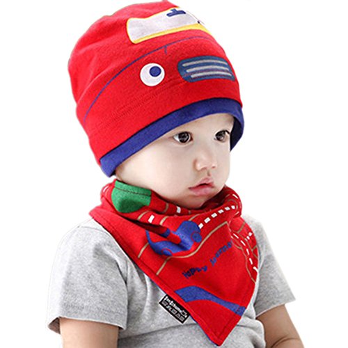 GOGO Baby Bib And Hat Set, Adorable Cartoon Pattern, 2 Pcs-Red