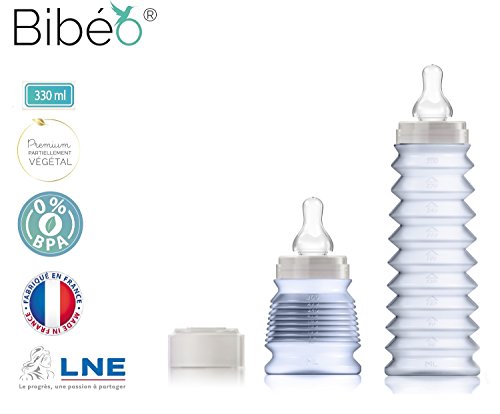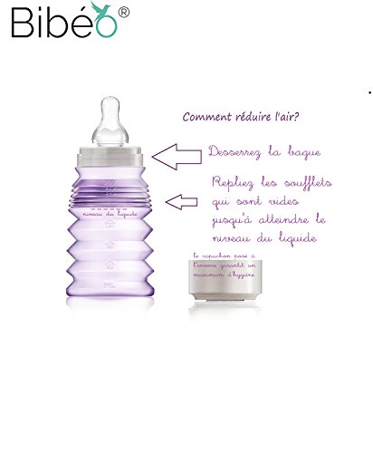 - BIBIGO?,THE FRENCH BABY BOTTLE, Air Vacuum, Adjustable to the liquid level,: anti-colics, stores infant formula while folded, space saver easyt to store at home and to carry outdoor