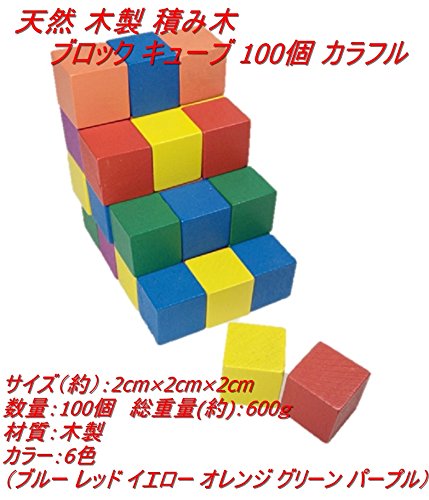 天然 木製 積み木 ブロック キューブ 100個 カラフル 知育 玩具 おもちゃ 幼児 赤ちゃん (2cmx2cm)