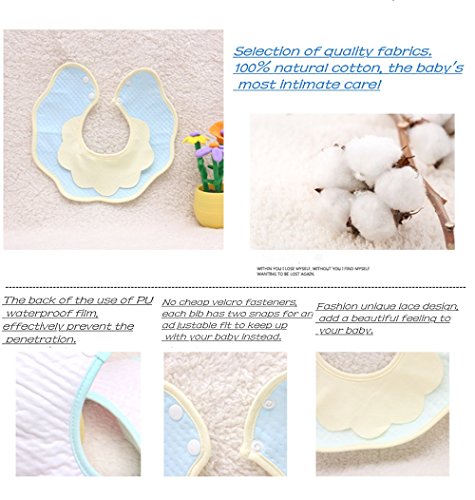 特徴:ファッションユニークなレースのデザインは、あなたの赤ちゃんに美しい感触を追加します。360度回転可能な綿の防水布の米ポケット。 テクスチャボタンは、シンプルで便利な、シャトルはより簡単に。赤ちゃんの首を傷つけるのを防ぐために伝統的な魔法のスティックではありません。 バックPUの防水膜を使用して、効果的に浸透を防ぐ。二重のボタンは、強く、耐久性があります。 製品の重量:21グラム