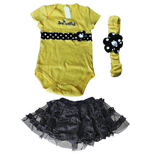 新しいファッション赤ちゃんきせかえセット赤ちゃん女の子セットロンパース+チュチュスカート+ヘッドバンド新生児Bebeスプリングサマーclothes-yellow /ブラック, 12 m