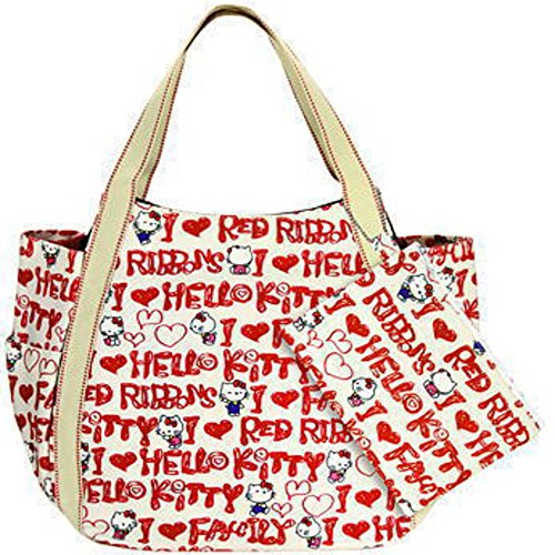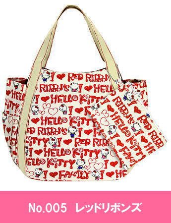 ≪Lサイズ≫【Hello Kitty/ハローキティ】お揃いのポーチ付き!キティちゃんのトートバッグ バルーンバッグ エコバッグ Lサイズ (No.005 レッドリボン)