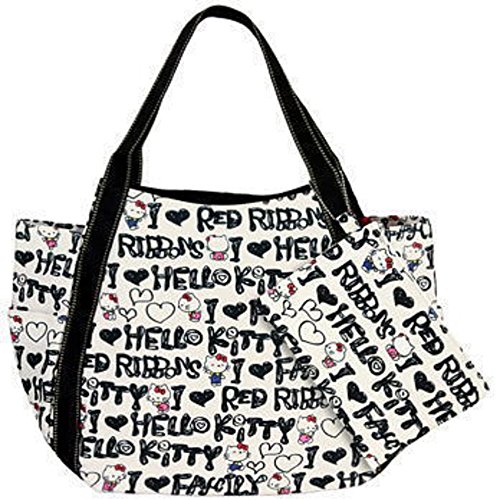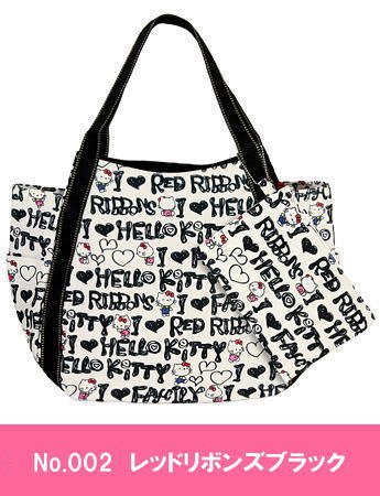 ≪Lサイズ≫【Hello Kitty/ハローキティ】お揃いのポーチ付き!キティちゃんのトートバッグ バルーンバッグ エコバッグ Lサイズ (No.002 レッドリボンズブラック)