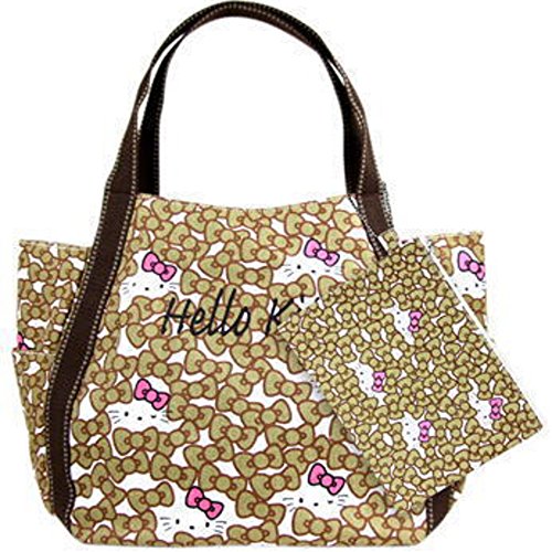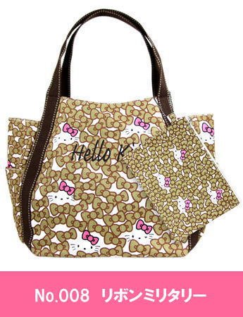 ≪Lサイズ≫【Hello Kitty/ハローキティ】お揃いのポーチ付き!キティちゃんのトートバッグ バルーンバッグ エコバッグ Lサイズ (No.008 リボンミリタリー)
