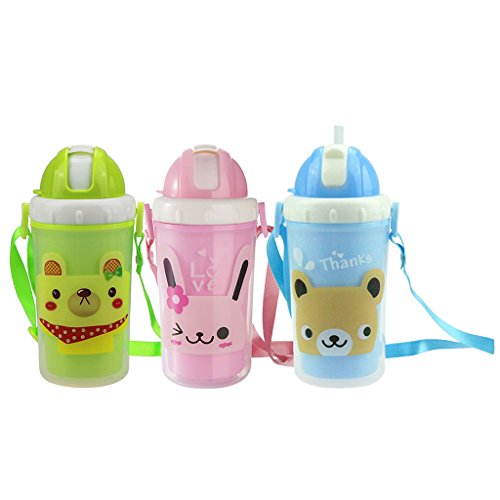 GRALARA3個セット 300ml キッズ ウォーターボトル ストローカップ 水筒 マグボトル ストラップ 携帯便利