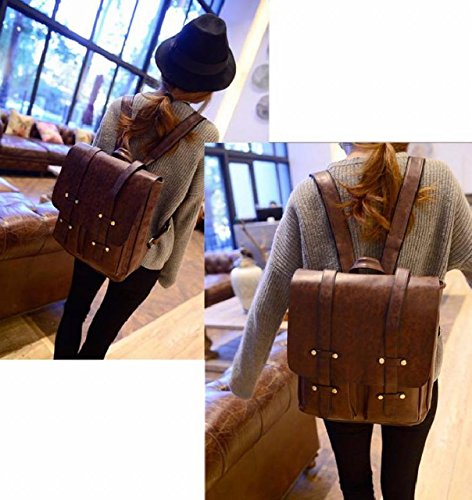 レディース アンティーク 風 レザー リュック トート バッグ 2way 大容量 通勤 通学 (ダークブラウン)