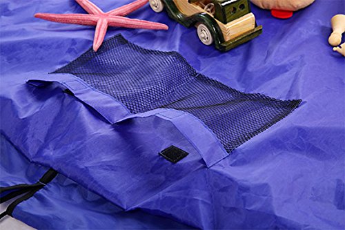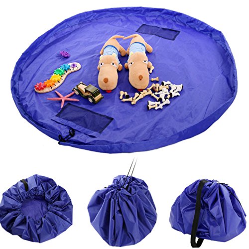 - 遊ぶときは広げてプレイマットとして大活躍。 ヒモを引っ張るだけでお片づけ!おもちゃ遊びスペースが一気に収納袋に。