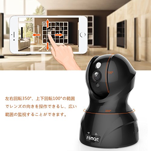 Fsmart ネットワークカメラ WIFIカメラ ワイヤレスIPカメラ 監視カメラ 720P 100万画素 首振り式 ベビーモニター ペット子供見守り動体検知 警報機能 双方向音声 遠隔操作 暗視機能 スマホ/ipad/パソコン対応