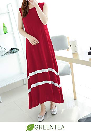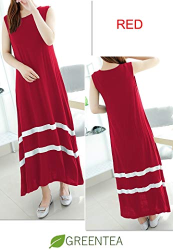 (グリーンティー) GREENTEA SHC27 RD XL ワンピース ロング ノースリーブ 薄手 シンプル レディース レッド