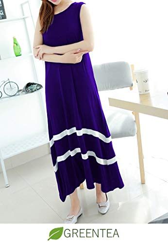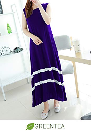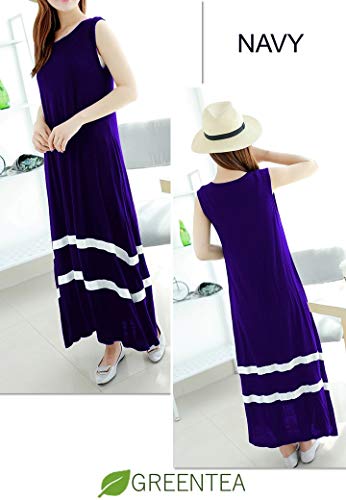 GREENTEA (グリーンティー) ワンピース ロング ノースリーブ 薄手 シンプル レディース ネイビー L