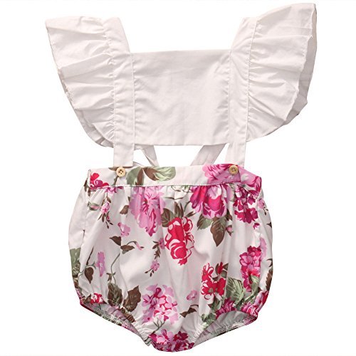grnshtsベビーガールズフラワープリントボタンフリルバックレスロンパース