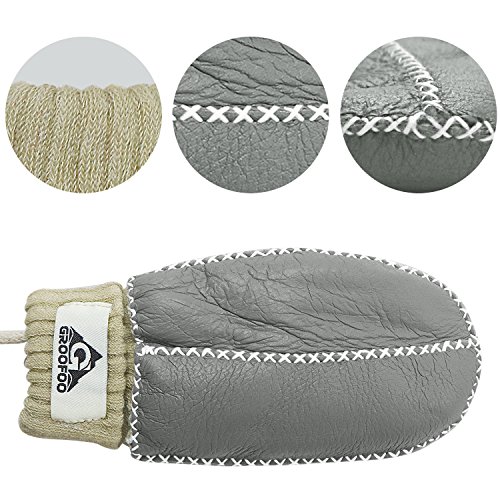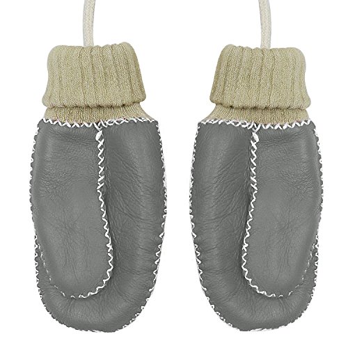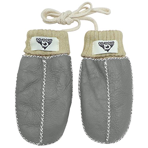 手袋 子供用 GROOFOO ミトン型 ジュニア キッズ グローブ ひも付き 冬 保温 防寒 裏起毛 モコモコ 男の子 女の子 レザー かわいい 編み手袋 ベビーグローブ スキー 雪遊び 通園 通学 3-8歳 (グレー)