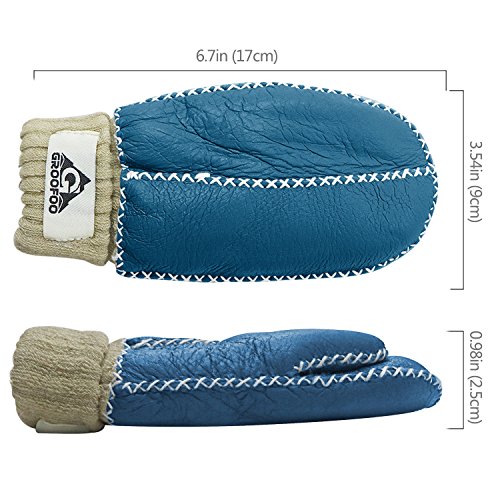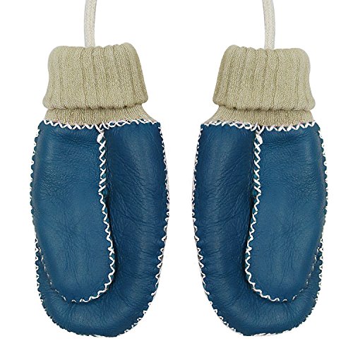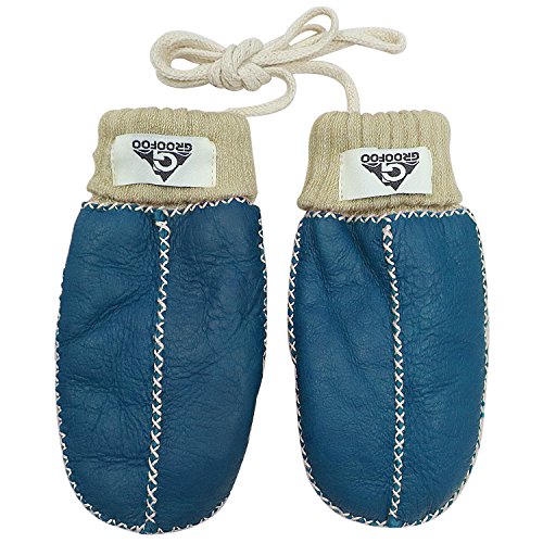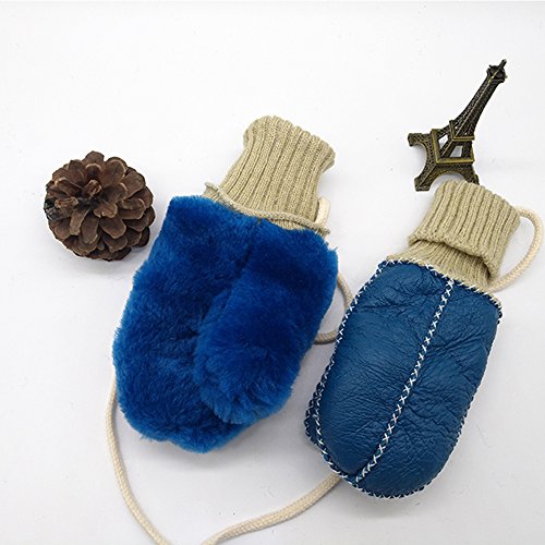 手袋 子供用 GROOFOO ミトン型 ジュニア キッズ グローブ ひも付き 冬 保温 防寒 裏起毛 モコモコ 男の子 女の子 レザー かわいい 編み手袋 ベビーグローブ スキー 雪遊び 通園 通学 3-8歳 (ブルー)