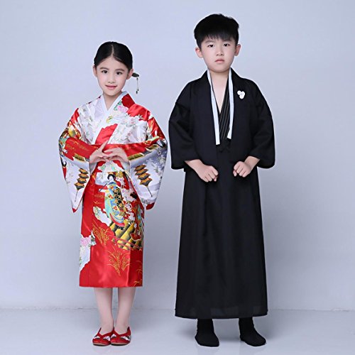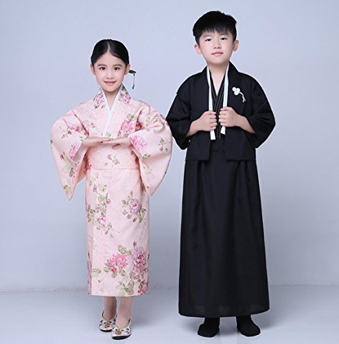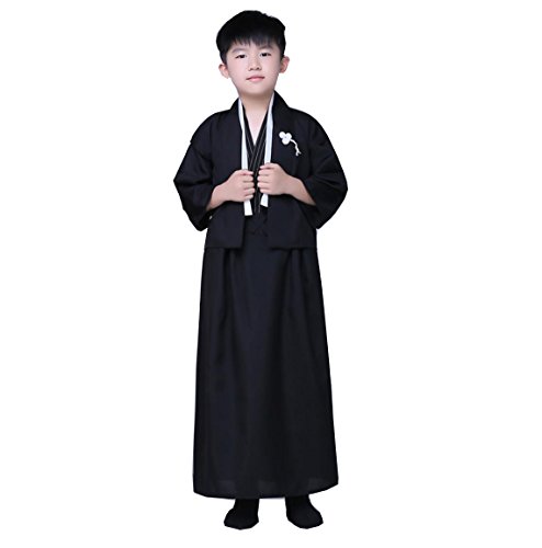 キッズ 着物 袴 和装 子供 ジンベエ セット 甚平 フォーマル ロンパース キッズ カバーオール 紋付袴 子供用 (150cm, ブラック)