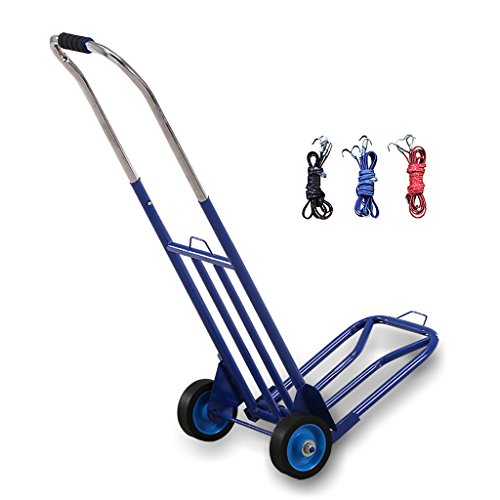 ショッピングカートトロリー折りたたみ式荷重100kg倉庫、農場、工場に適しています14CMゴム製ホイールブルーフレーム