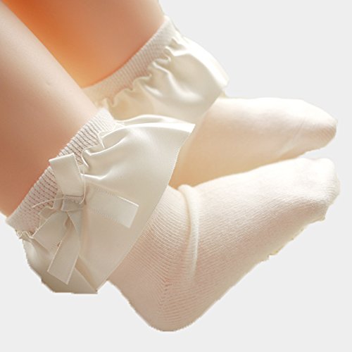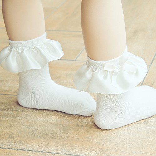 √サテン風フリルがポイントで合わせやすいカラーのキッズソックス