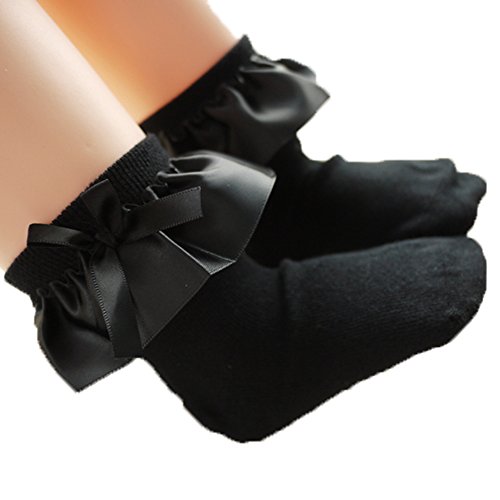 サテン風フリルがポイントで合わせやすいカラーのキッズソックス
