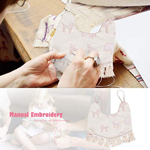 ベビー スタイ 赤ちゃん よだれかけ,FYY 麻 リネン タッセル 新生児 女の子 前掛け 付け襟 ベビービブ 食事用 バースデー 出産祝い ギフト お洋服にピッタリ リボン結びタイプ 両面使用可能 小動物 (ベージュ+オレンジ)