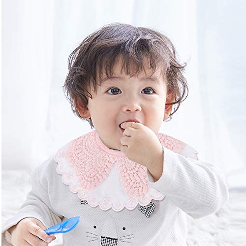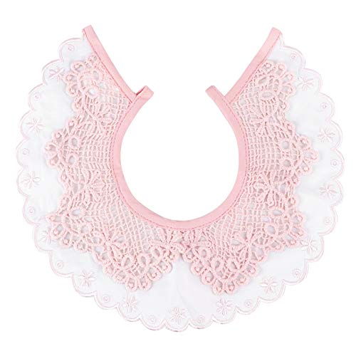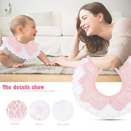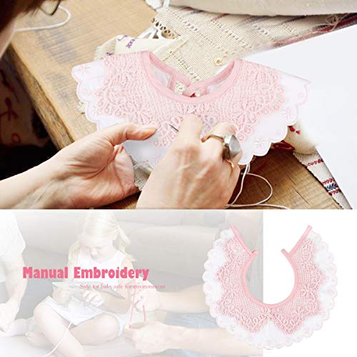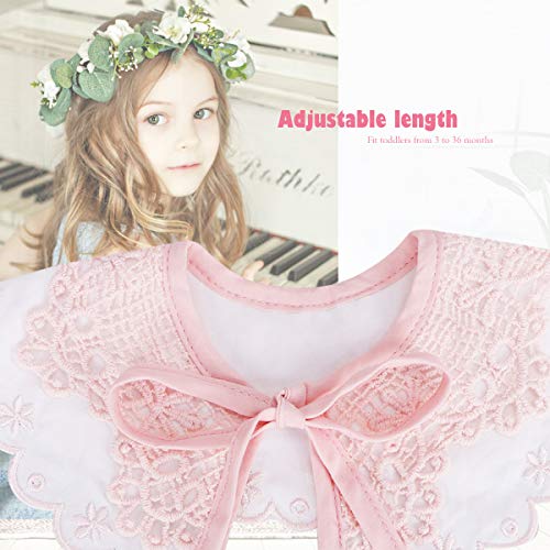 ベビー スタイ 赤ちゃん よだれかけ,FYY 綿 レース 刺繍 新生児 女の子 前掛け 付け襟 ベビービブ 食事用 バースデー 出産祝い ギフト お洋服にピッタリ リボン結びタイプ (ピンク)