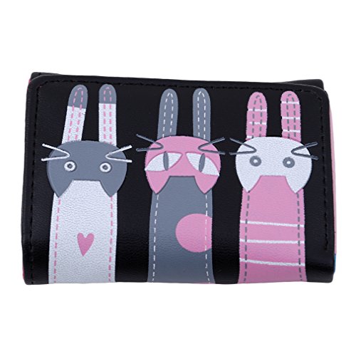Guangqiレディース短い財布、Lady Shortレザー財布漫画猫財布カードホルダーコインハンドバッグ 4.33*3.54in ブラック 24