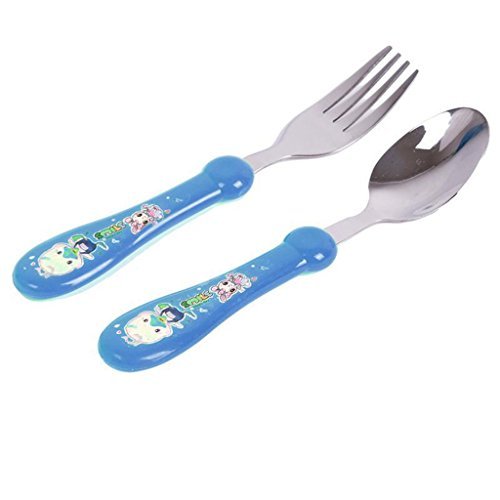 Type:Flatware;Age Group:5 Month Above;Color:Blue,Red,Yellow;Material:stainless steel;Package Included:1 X Stainless Steel Spoon 1 X Stainless Steel Fork