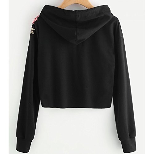Guangqiレディースローズ刺繍パーカースエットシャツCrop Top Drawstringプルオーバートップス X-Large ブラック 73