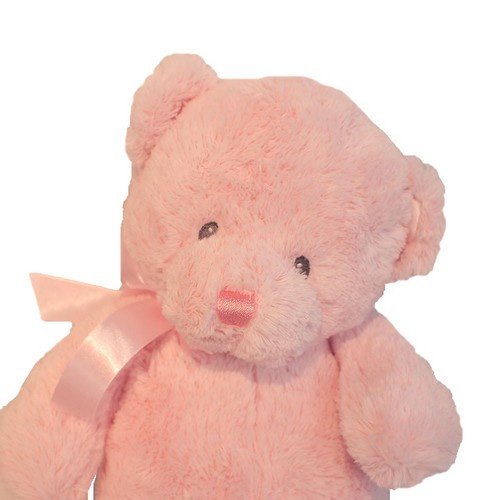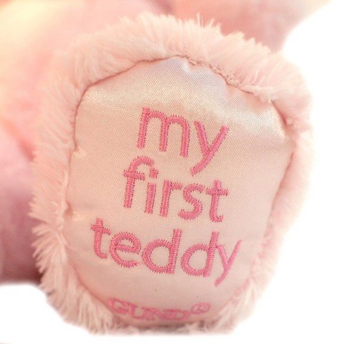 淡いパステルピンクのボディにグレーの淡い目でとても可愛いクマちゃんの足には「My First Teddy」のロゴが危険の無いよう刺繍で施されています。
