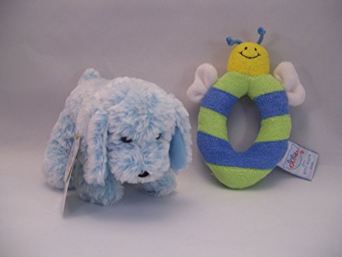 Baby Gund 2つのセットブルー子犬水たまりand Bee Rattles