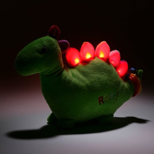 楽しい音楽と一緒に背びれの光に合わせて1~10までの数字を英語で数えてくれるカラフルな恐竜のぬいぐるみです。