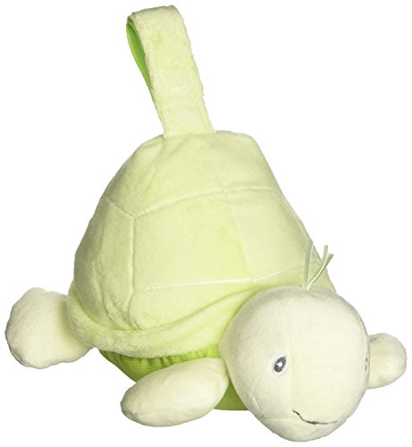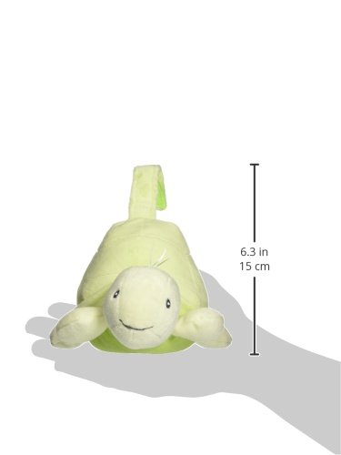 Green plush turtle plays calming ambient music for 30 minutes at the push of a button