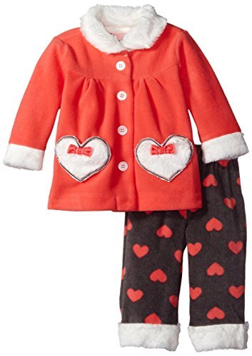 Little Lass Baby Girls' 2 Piece Polar Fleece Set Hearts Calypso Coral 6-9 Months [並行輸入品]